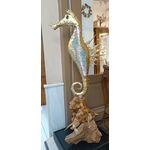 Illuminated Harmony: A Brass and Hammered Glass Seahorse Sculpture