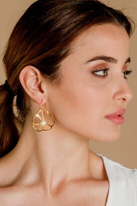 Υπέροχα ασημένια χειροποίητα σκουλαρίκια με Μαργαριτάρι σε σχήμα λουλουδιού