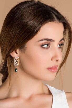 Ασημένια χειροποίητα σκουλαρίκια σε σχήμα φύλλου με κρεμαστό στοιχείο απο χαλαζία quar...
