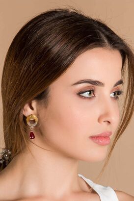 Ασημένια χειροποίητα σκουλαρίκια σε σχήμα κύκλου με κρεμαστό στοιχείο από Γρανάδα .