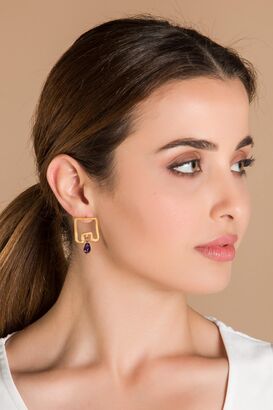 Ασημένια χειροποίητα σκουλαρίκια με κρεμαστό στοιχείο από αμέθυστο.