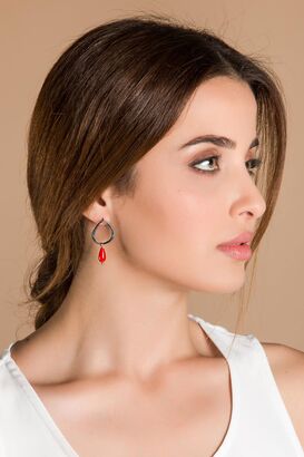 Ασημένια χειροποίητα σκουλαρίκια σε σχήμα κύκλου με κρεμαστό στοιχείο απο κοράλλι .