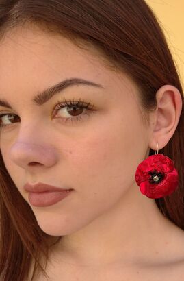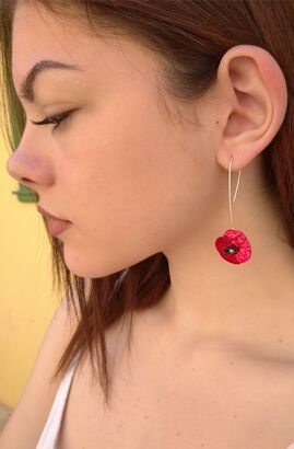Εντυπωσιακό Ασημένιο Σκουλαρίκι με Παπαρούνα