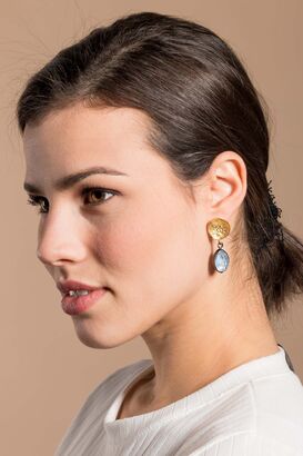 Ασημένια χειροποίητα σκουλαρίκια σε σχήμα φύλλου με κρεμαστό στοιχείο απο χαλαζία quar...