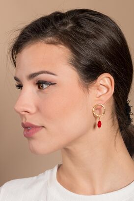 Ασημένια χειροποίητα σκουλαρίκια σε σχήμα κύκλου με κρεμαστό στοιχείο απο κοράλλι .