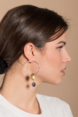 Υπέροχα ασημένια χειροποίητα σκουλαρίκια κρίκοι και μαύρο μαργαριτάρι / Μαργαριταρένια...