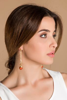 Μακριά ασημένια χειροποίητα σκουλαρίκια με κρεμαστό στοιχείο από κοράλι