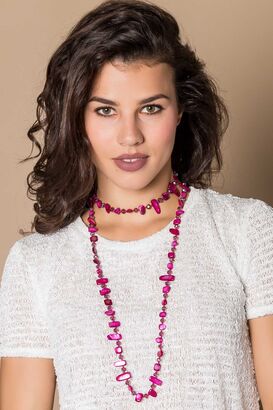 Κολιέ από πέτρες από φίλντισι συνδυασμένο με κρύσταλλα σε χρώμα Κοκκινο Κερασί
