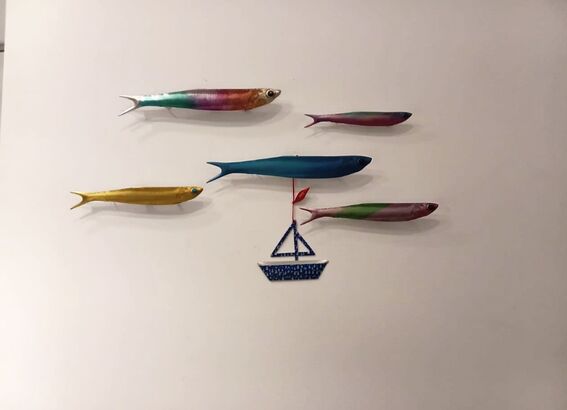 Illuminated Harmony: A Brass and Hammered Glass Fish Sculpture