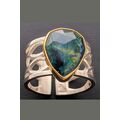 Πρόκειται για ένα χειροποίητο δαχτυλίδι με μια εντυπωσιακή πέτρα Αζουρίτη Μαλαχίτη, σε σχήμα δάκρυ.