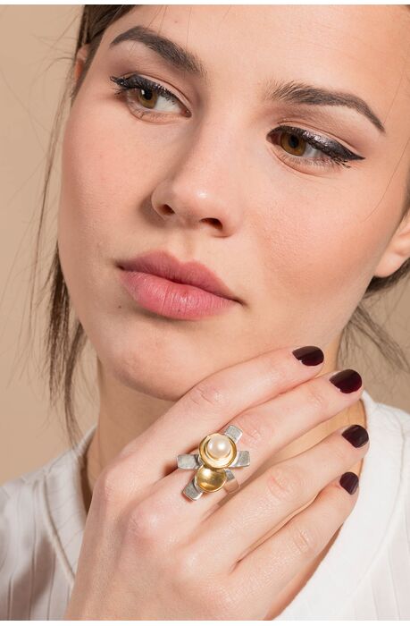 Υπέροχο μαργαριτάρι δεμένο σε ασημένια βάση, με μοντέρνα διάθεση. Χαρίσετε το στα αγαπημένα πρόσωπα. Μπορεί να γίνει δαχτυλίδι αρραβώνα ή γαμήλιο δώρο. Το μέγεθος είναι ρυθμιζόμενο με δυνατότητα να προσαρμόζεται εύκολα σε κάθε δάχτυλο. Συνοδεύεστε τις καλύτερες στιγμές τις ζωής σας, φορώντας αυτό το δαχτυλίδι.