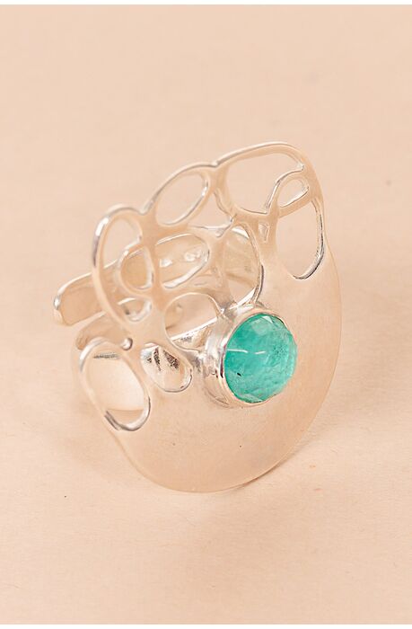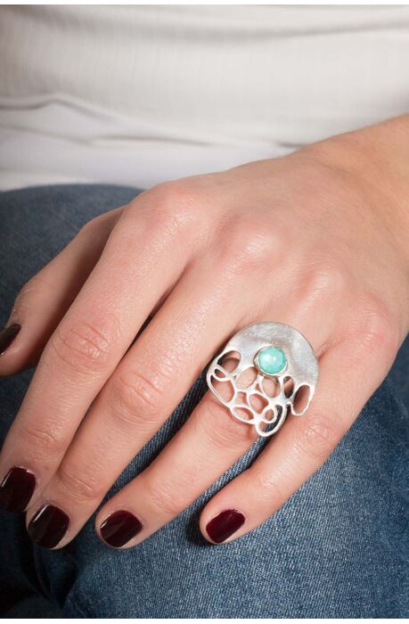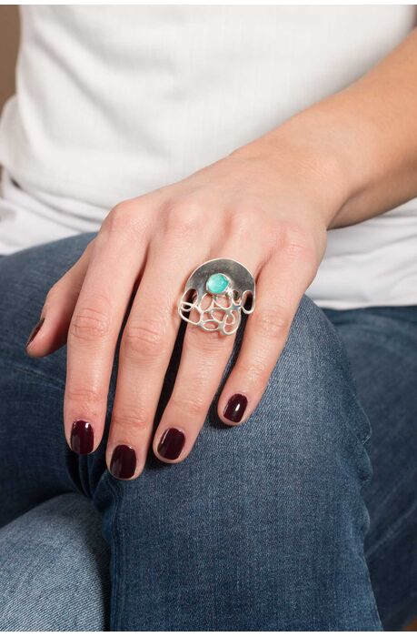 Ασημένιο δαχτυλίδι δουλεμένο στο χέρι, με μοντέρνο εντυπωσιακό σχέδιο που το συμπληρώνει ένα υπέροχο φωτεινό τουρκουάζ.