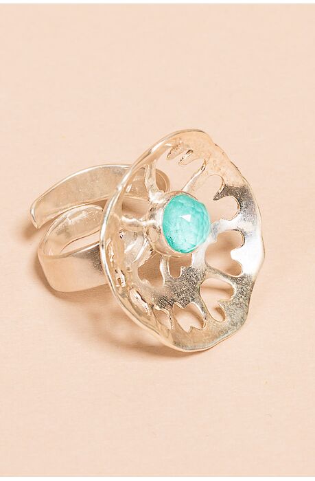 Αφήστε αυτό το δαχτυλίδι να λάμψει στα δάχτυλά σας. Η ασημένια βάση του, σαν λουλούδι, σχεδιασμένο σε μοντέρνα γραμμή, θα απογειώσει την εμφάνιση σας.