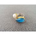 Χειροποίητο Ασημένιο Δαχτυλίδι 925 με μπλέ ημιπολύτιμη πέτρα Turquoise και μαργαριτάρι perla