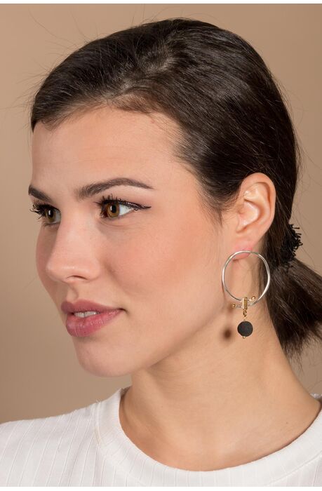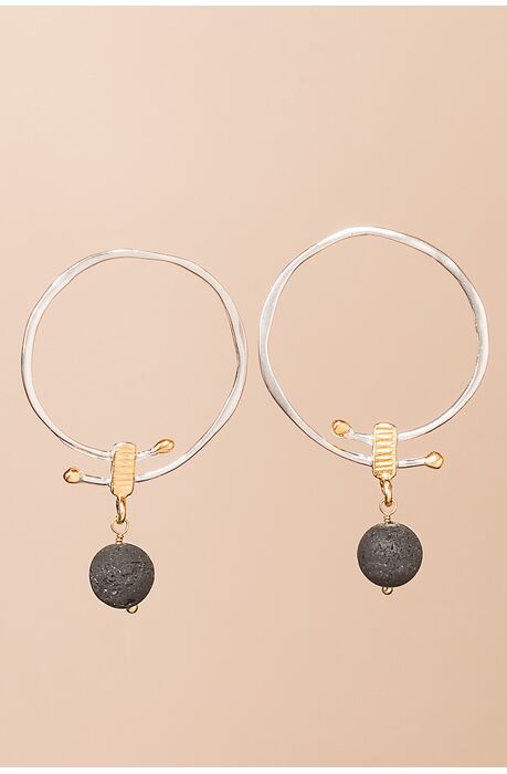 Μοντέρνα ασημένια σκουλαρίκια με λάβα / Σκουλαρίκια Κρίκοι / Μεγάλα Σκουλαρίκια