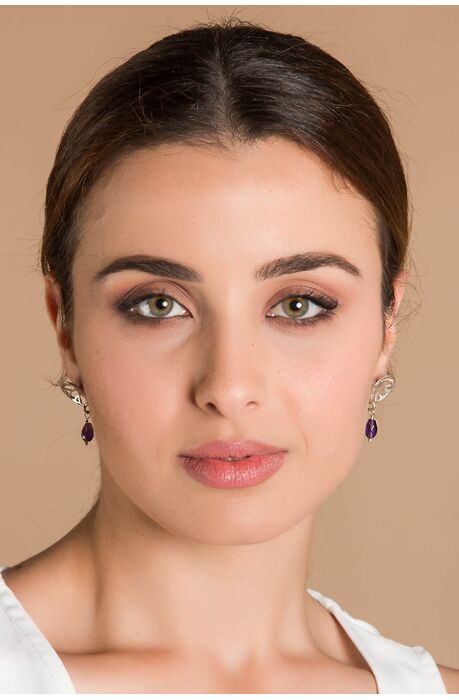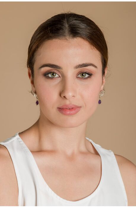 Ασημένια χειροποίητα σκουλαρίκια με κρεμαστό στοιχείο από αμέθυστο