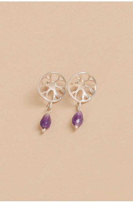 Υπεροχα μικρά ασημένια σκουλαρίκια με αμέθυστο. Είναι εξ'ολοκληρου χειροποίητα. Από ένα μικρό ασημένιο λουλούδι κρέμεται μια σταγονα αμέθυστου ως σύμβολο ηρεμίας και πνευματικότητας.