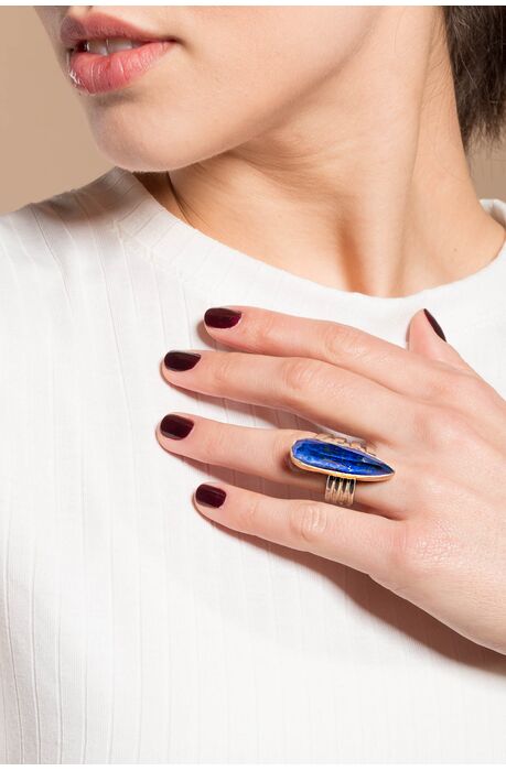 Συνδέστε τις καλύτερες στιγμές της ζωής σας με ένα τέτοιο κόσμημα. Ένα υπέροχο κόσμημα δουλεμένο ασήμι 925 στο χέρι. Μια βαθιά μπλε πέτρα Lapis Lazuli, εξαιρετικής ποιότητος, ελευθερώνει τα χρώματα της μέσα από το χαλαζία,quartz. Επιβλητικό, υπέροχα κομψό και μοντέρνο κόσμημα, που θα εντυπωσιάσει. Ο σχεδιασμός του είναι μοναδικός, και έχει μελετηθεί για να δείχνει το δάχτυλά σας, πιo μακριά και λεπτά. Το μέγεθος είναι ρυθμιζόμενο με δυνατότητα προσαρμόζεται εύκολα σε κάθε δάχτυλο. Απολαύστε κάθε ώρα της ημέρας. Είναι ένα τέλειο δώρο που σίγουρα θα χαρείτε.