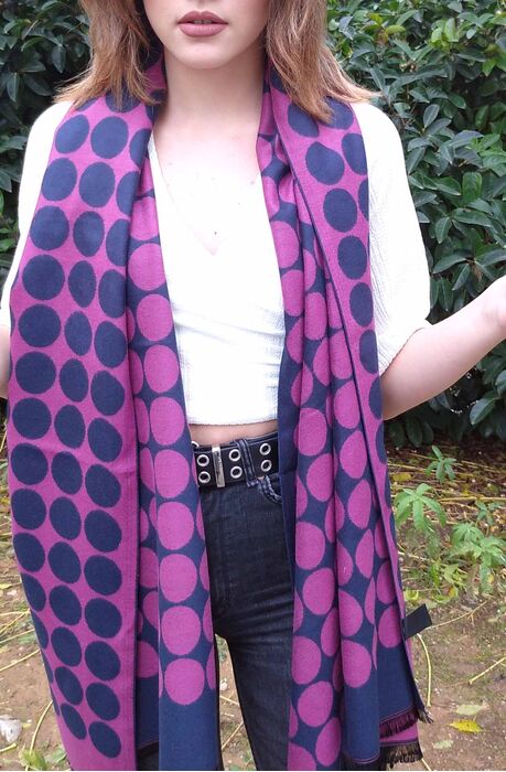 Γυναικείο Φουλάρι Κασκολ σε χρώμα ΜΠΛΕ ΚΑΙ ΒΥΣΙΝΙ με κλασσικά πουά / Mάλλινο φουλάρι εσαρπα
