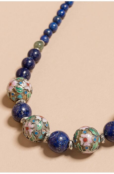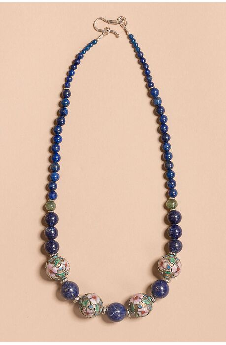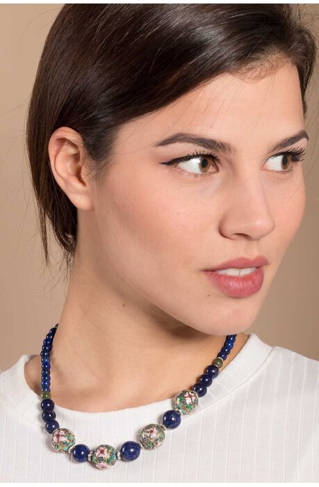 Ένα καταπληκτικό κόσμημα. Υπέροχο κολιέμε αυθεντικό Lapis, εναλλάσσεται με ασημένια στοιχεία φτιαγμένα με την τεχνικήτου κλουαζονέ. Είναι πολύ ιδιαίτερο κόσμημα, που μπορείτε να το συνδυάσετε μεκάθε εμφάνιση σας. Κλασσικό και ασυνήθιστο αυτό το κολιέ, είναι 100% χειροποίητο,