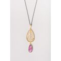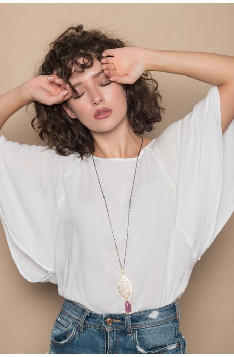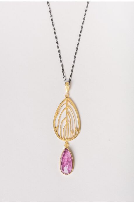 Υπέροχο κολιέ δουλεμένα στο χέρι, για λεπτά γούστα. Ένα κόσμημα με μοντέρνο σχεδιασμό. Το φωτεινό ρουμπίνι είναι εξαιρετικής ποιότητας και έχει ένα υπέροχο δαμασκηνί χρώμα που φωτίζεται από τον αστραφτερό χαλαζία που το σκεπάζει.