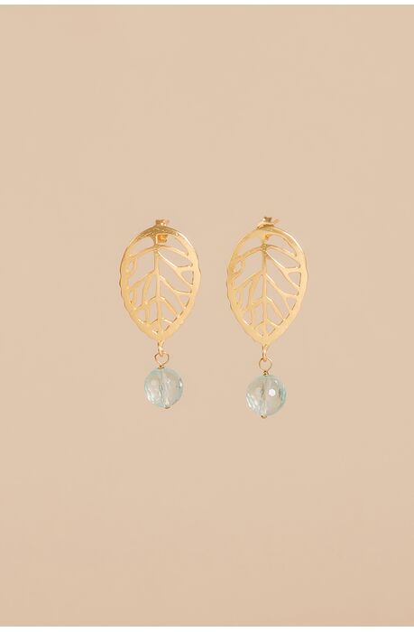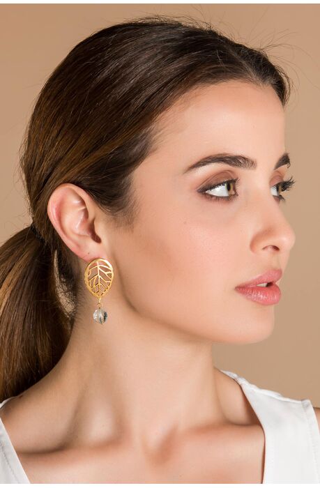 Ασημένια χειροποίητα σκουλαρίκια σε σχήμα φύλλου με κρεμαστό στοιχείο απο χαλαζία quartz. / Κοσμήματα με χαλαζία quartz