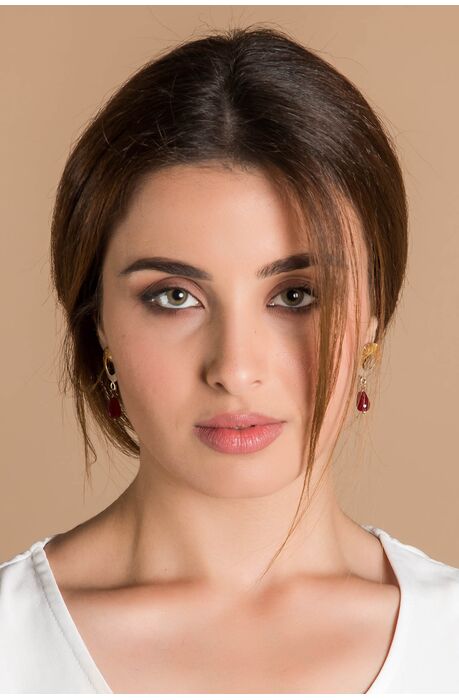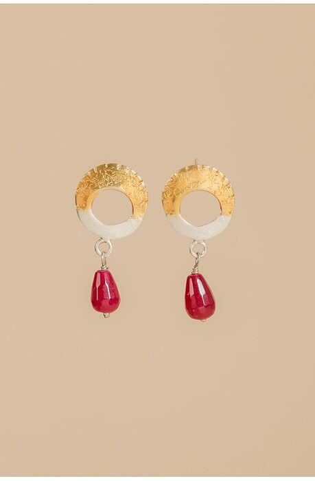 Ασημένια χειροποίητα σκουλαρίκια σε σχήμα κύκλου με κρεμαστό στοιχείο από Γρανάδα .