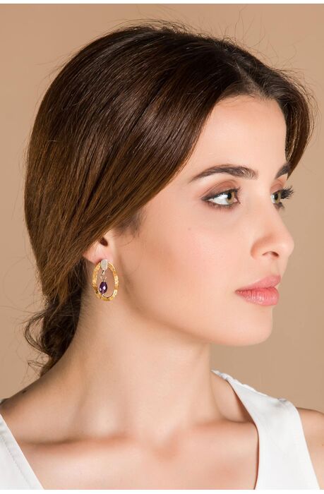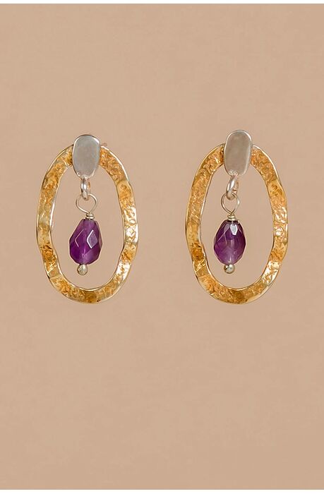 Ασημένια χειροποίητα σκουλαρίκια με κρεμαστό στοιχείο από αμέθυστο.