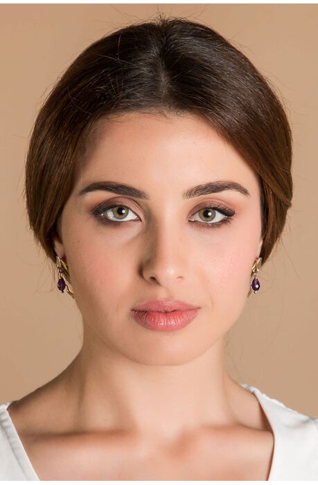 Ασημένια χειροποίητα σκουλαρίκια με κρεμαστό στοιχείο απο αμέθυστο. / Κοσμήματα με αμέθυστο