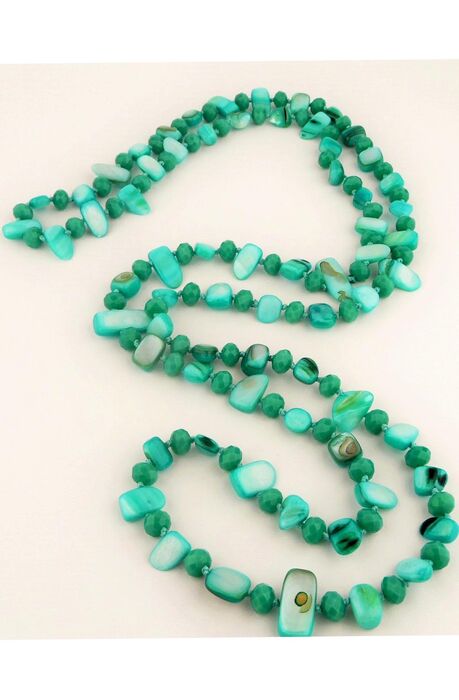 Κολιέ από πέτρες φίλντισι συνδυασμένο με κρύσταλλα σε χρώμα ανοικτό ΠΡΑΣΙΝΟ