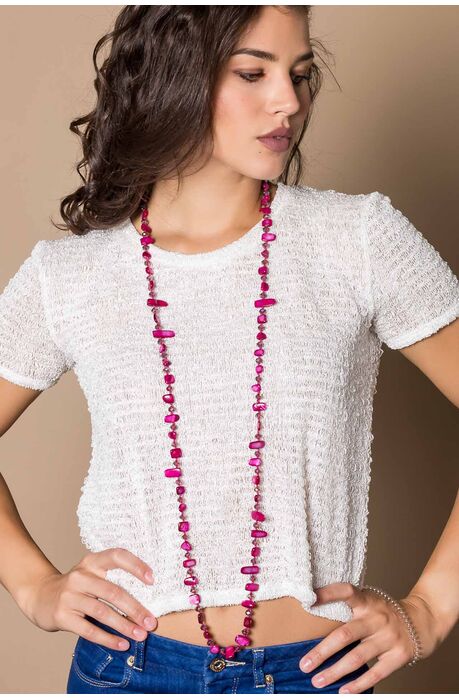 Ένα υπέροχο χαρούμενο κολιέ με πέτρες από φίλντισι και κρύσταλλα. Αυτό το κολιέ σίγουρα δεν θα περάσει απαρατήρητο. Θα το φορέσετε κάθε μέρα και θα είναι πάντα εντυπωσιακό. Τυλιχτέ το μια ή δύο φορές γύρω από το λαιμό σας και αναδείξτε το ντύσιμο σας.