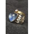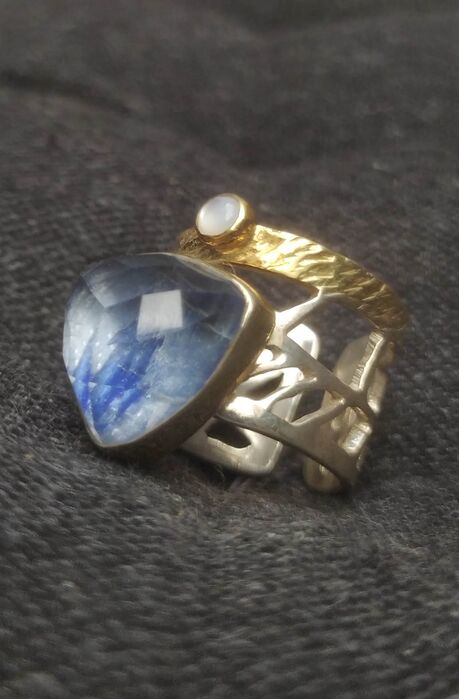 Μοντέρνο ασημένιο δαχτυλίδι με Κυανίτη και Φεγγαρόπετρα  Moonstone  /Γαμήλιο δώρο