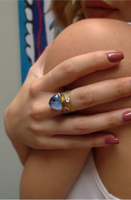 Το υπέροχο χρώμα του Κυανίτη σε συνδυασμό με την Φεγγαρόπετρα, τονίζουν με κομψότητα το δυναμισμό σας