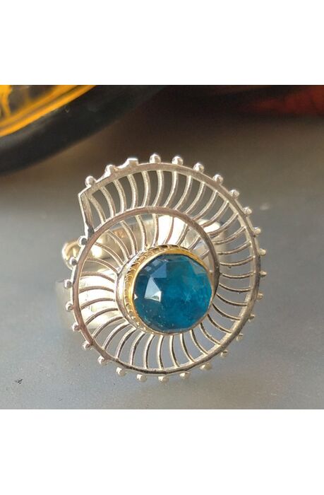 Κομψό ασημένιο δαχτυλίδι με Απατίτη / Δαχτυλίδι επετείου / Κλασικό Δαχτυλίδι / Δαχτυλίδι Απατίτη/ Μπλε δαχτυλίδι