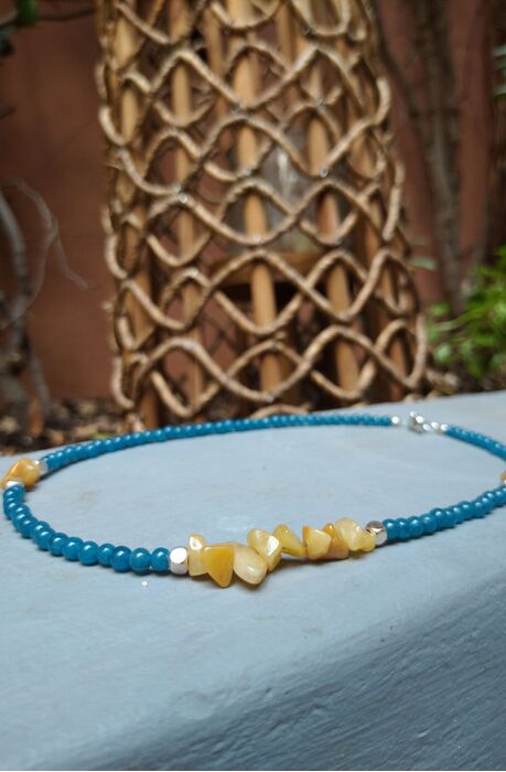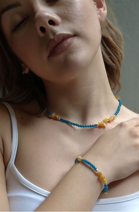 Ένα εντυπωσιακό σετ κολιέ και βραχιόλι που μπορεί να φορεθεί όλες της ώρες. Είναι κατασκευασμένο στο χέρι με πέτρες από αχάτη και ασημένια στοιχεία.