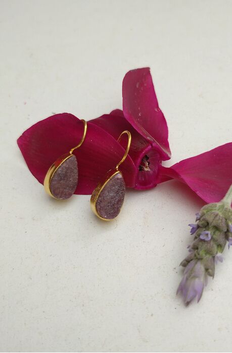 Χειροποίητα Ασημένια Σκουλαρίκια με ακατέργαστο Ρουμπίνι