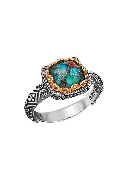 Aργυρό δαχτυλίδι 925 με τετράγωνο Χρυσόκολλα 8x8 mm και με ντουμπλέ χρύσωμα Κ24 στα 0.5 MICRO