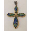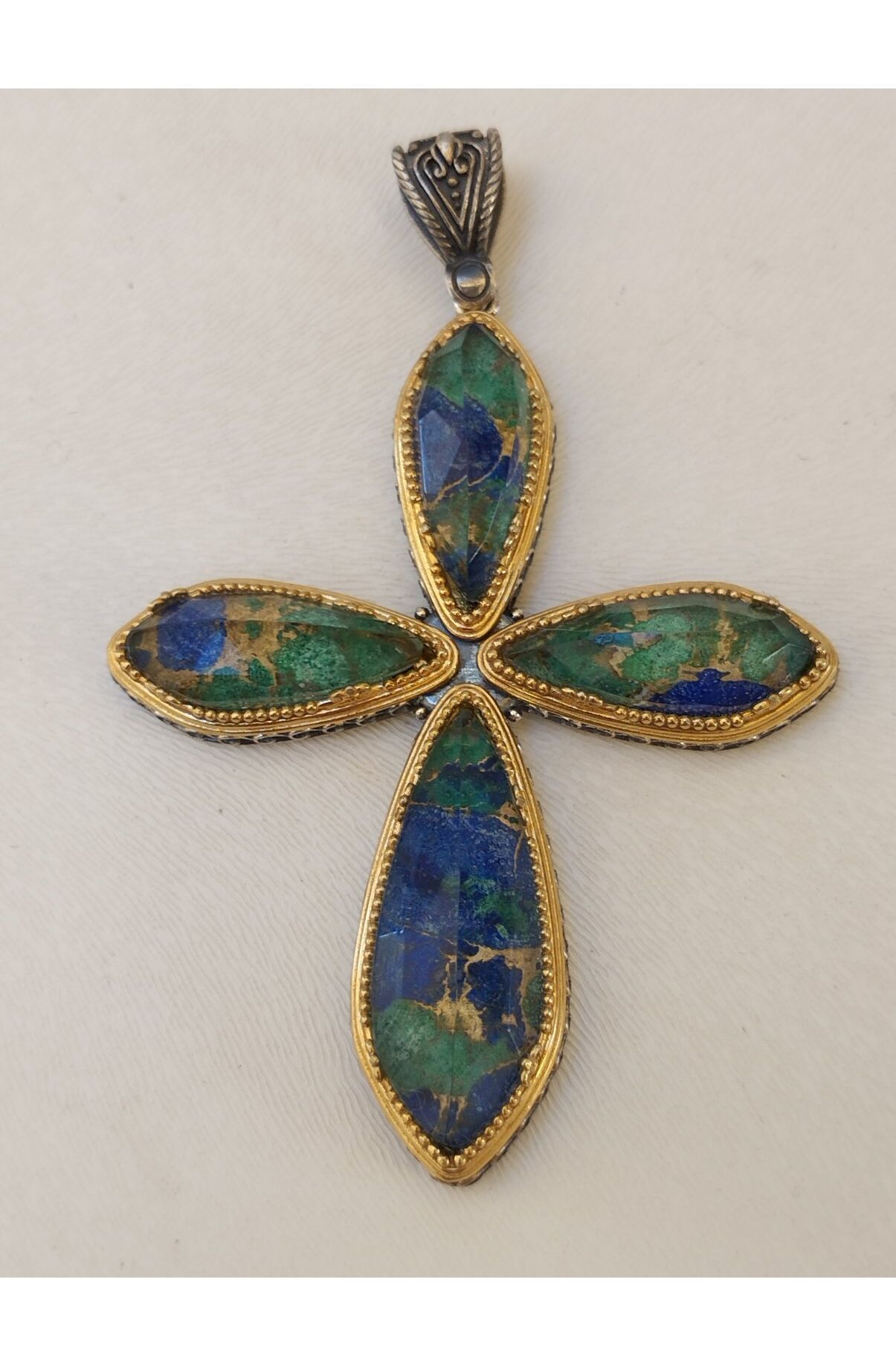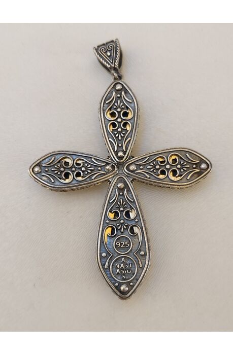 Byzantine Cross in 18k Gold and Steling Silver with a Topaz